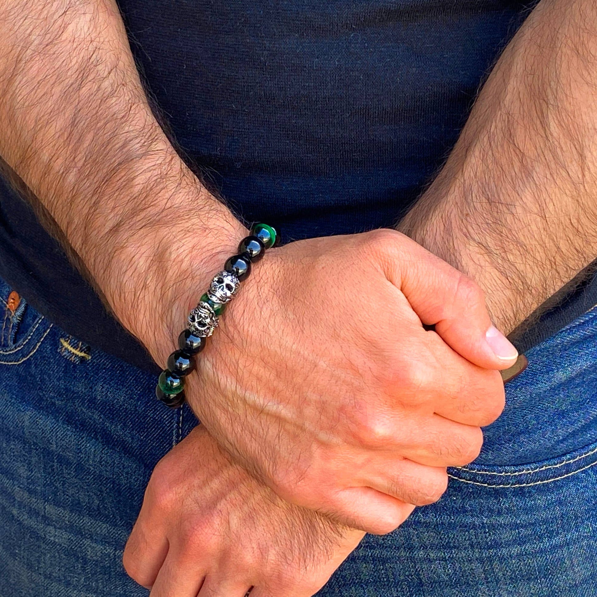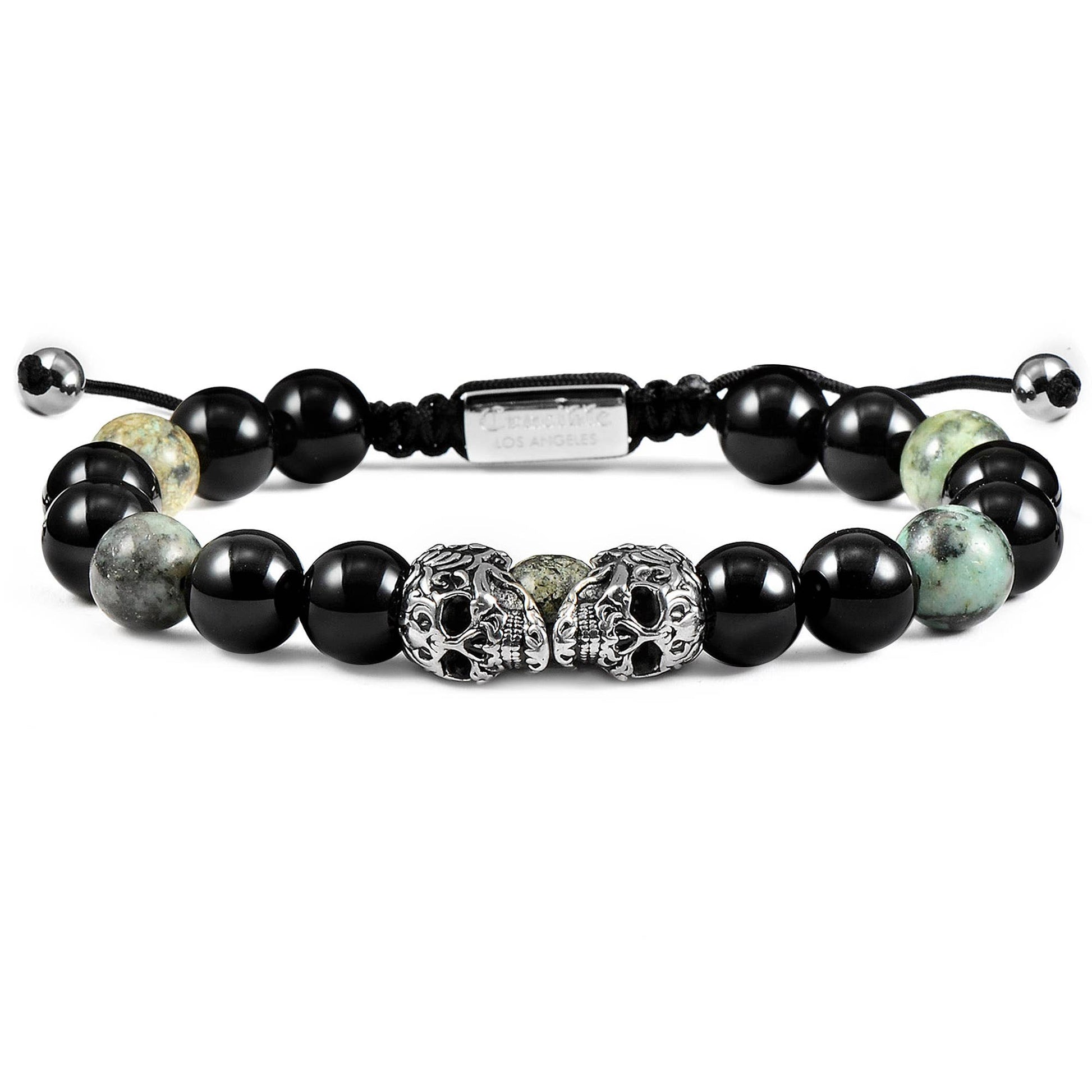 Crucible Skulls Natural Stone and Onyx Adjustable Bracelet: Red Tiger Eye