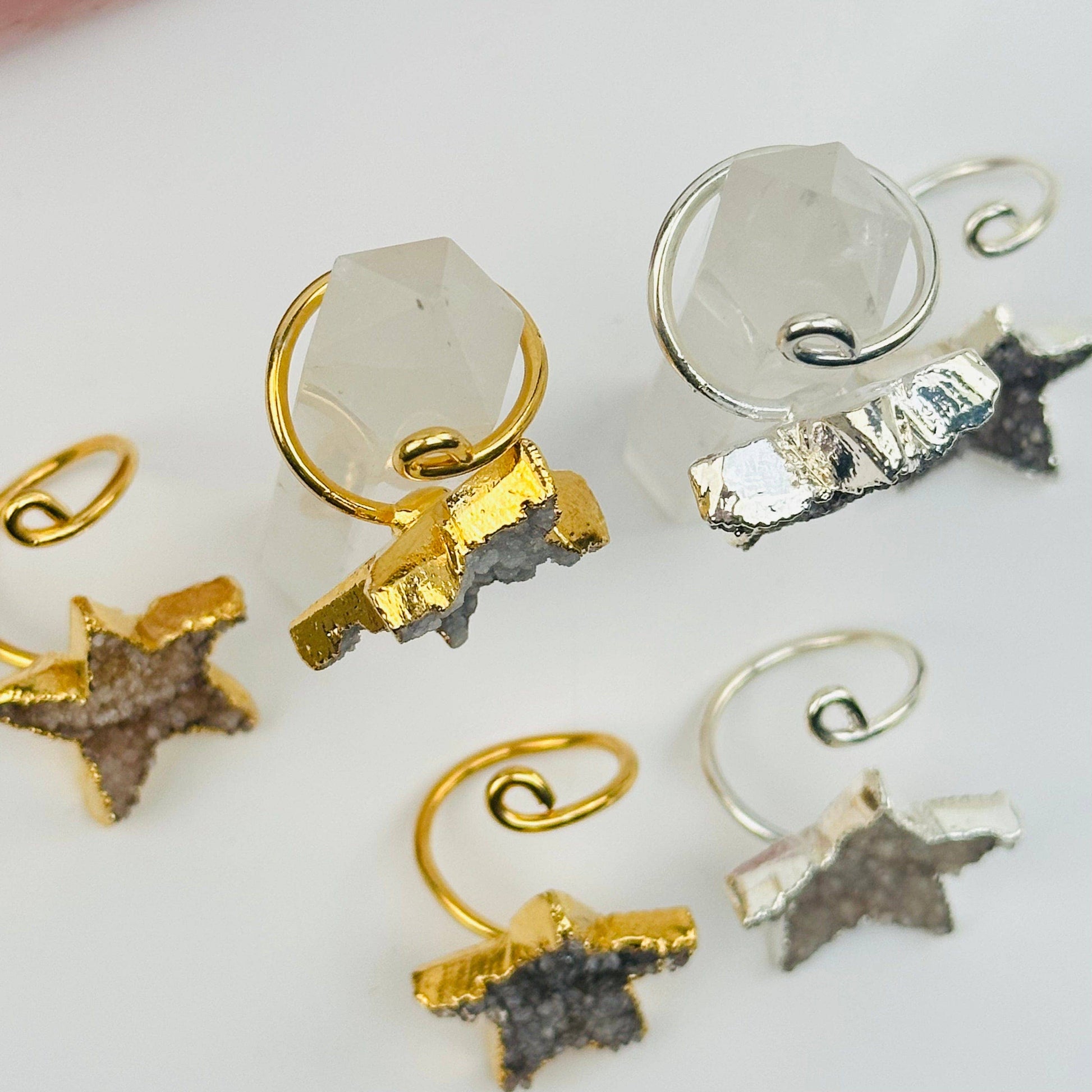 * Content: One Crystal Druzy Star Wrap Ring with Thin Adjustable 24k Gold or Silver Electroplated Band