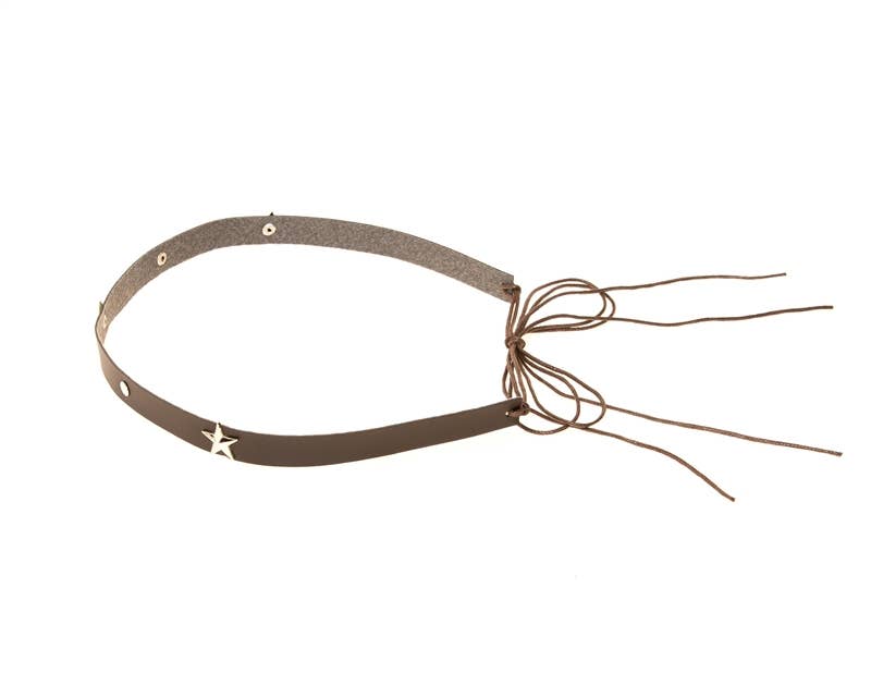 Western-style hat band in dark brown faux leather with silvers stars and studs.